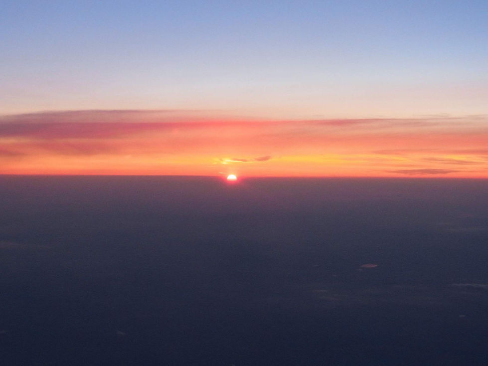 21:21 雲海を抜けたら、夕陽が残っていました。機窓の夕景を堪能します。